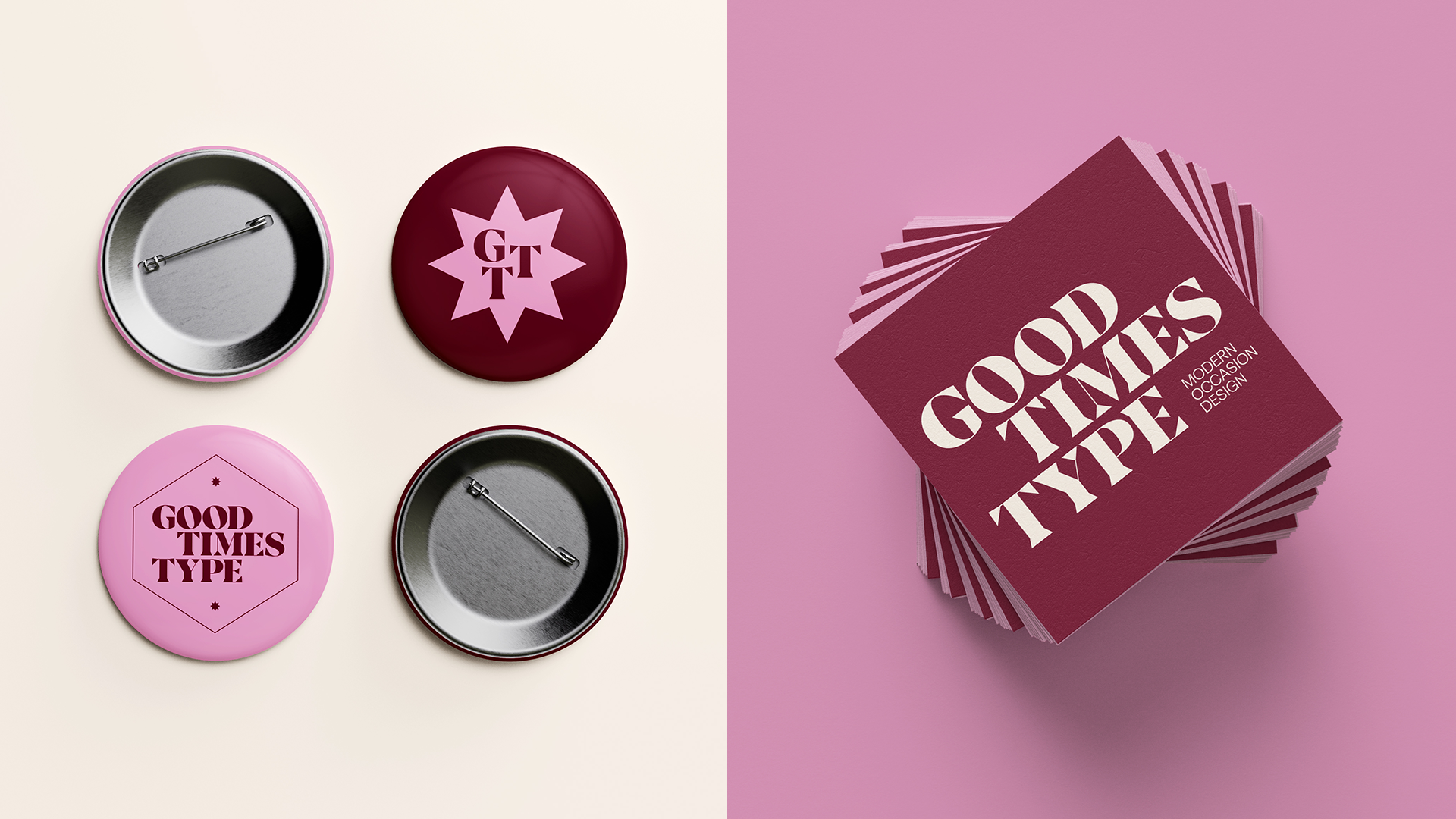 Good Times Type specialise in modern occasion design, using typography and colour to bring the good times to life in a bold and stand out approach. This approach to business framed the creative approach for the visual identity.